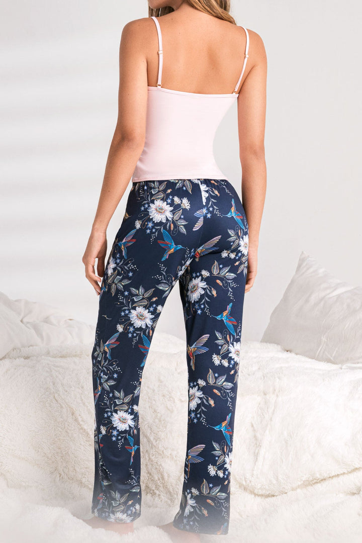 Conjunto de pijama de camiseta tiras con estampado localizado y pantalon con cintura elástica para mayor comodidad
