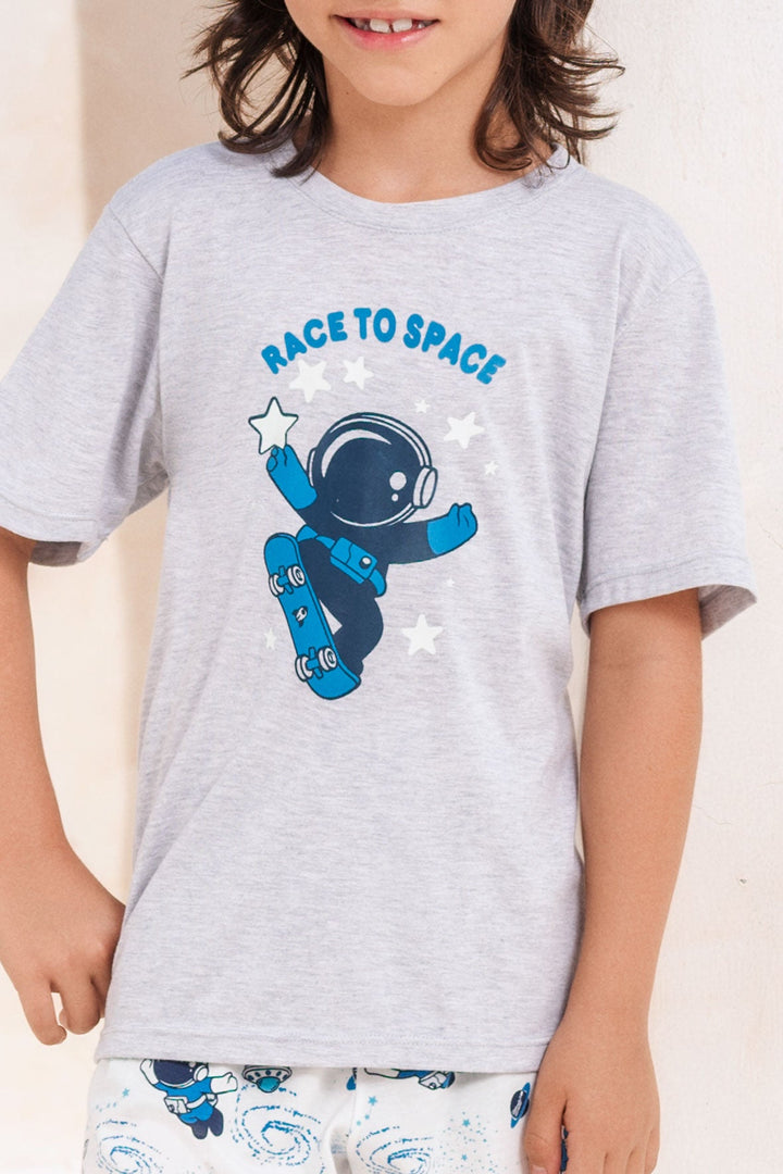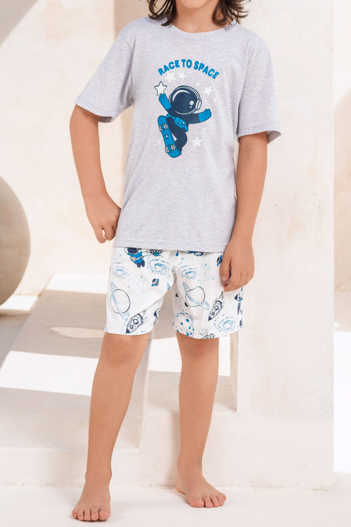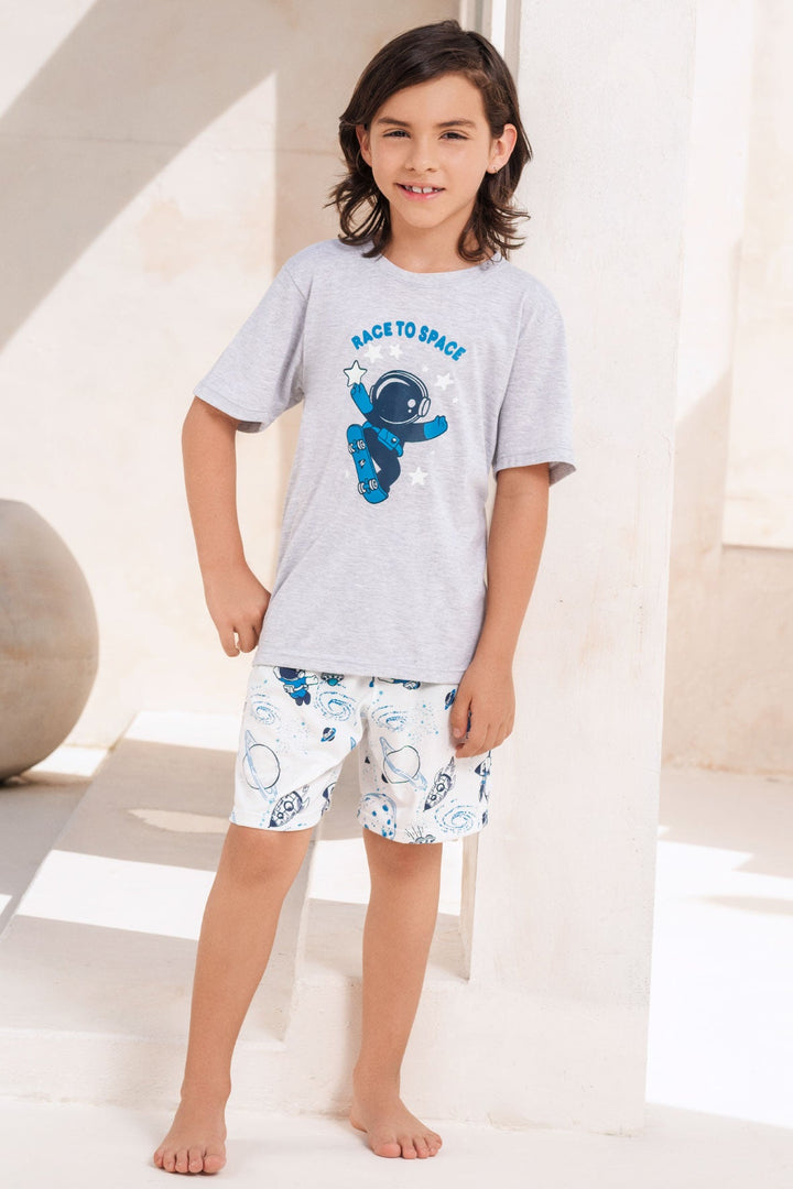 Pijama de niño suave y cómoda con Camiseta estampada manga corta, diseñada junto a un short estampado con cintura elástica.