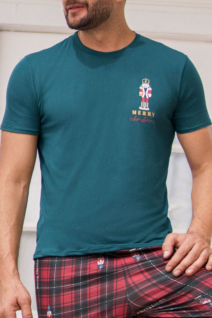 Pijama en algodón para hombre suave y cómoda, con camiseta estampada manga corta,