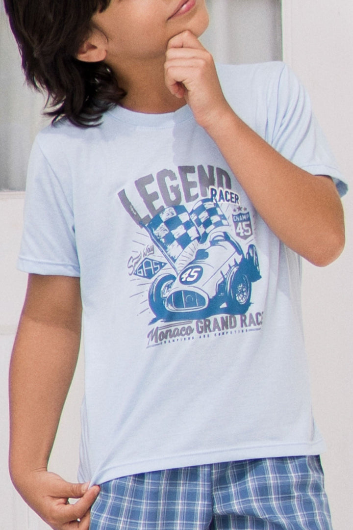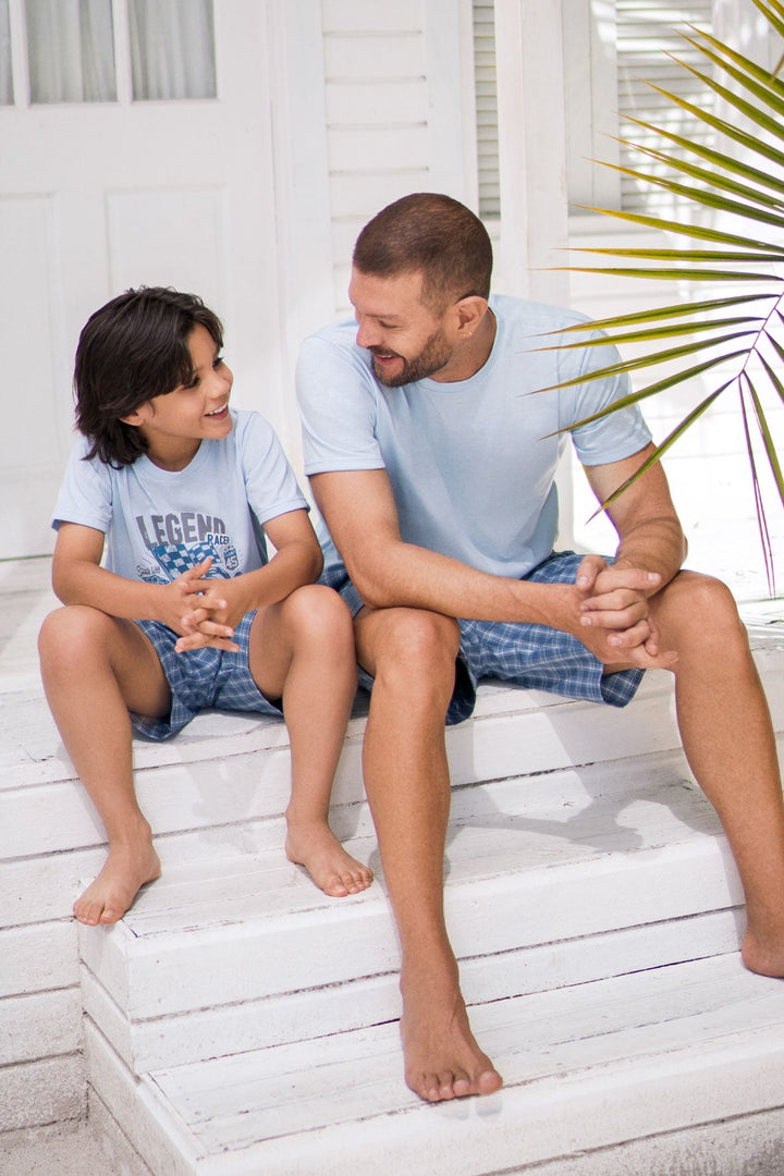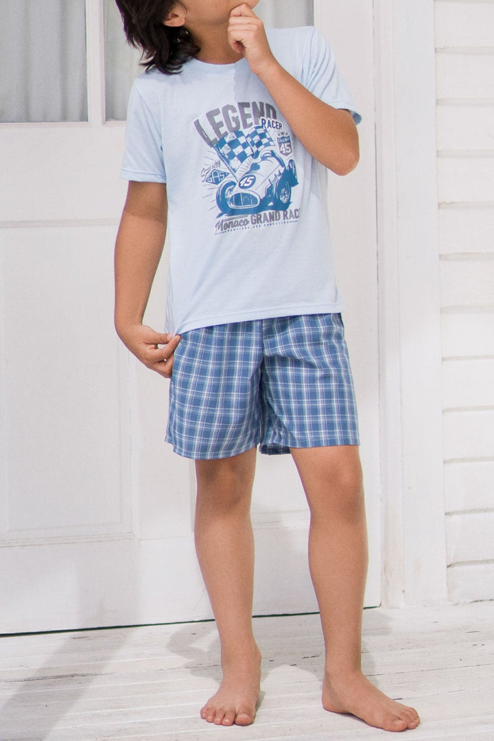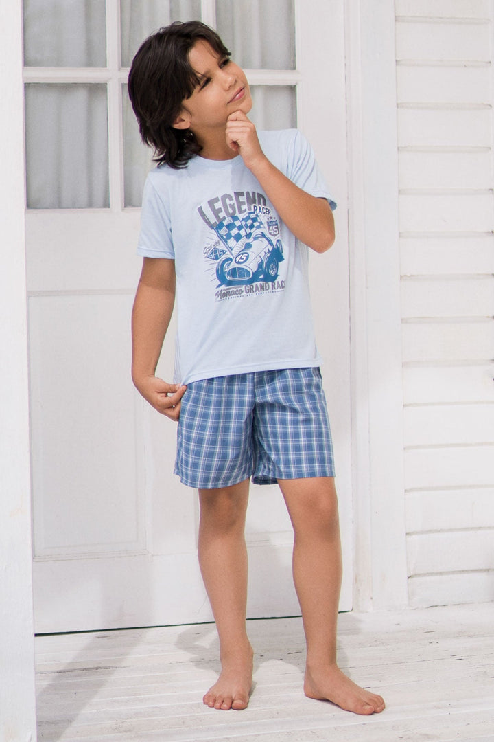 Pijama en algodón para niño suave y cómoda, con camiseta estampada manga corta,