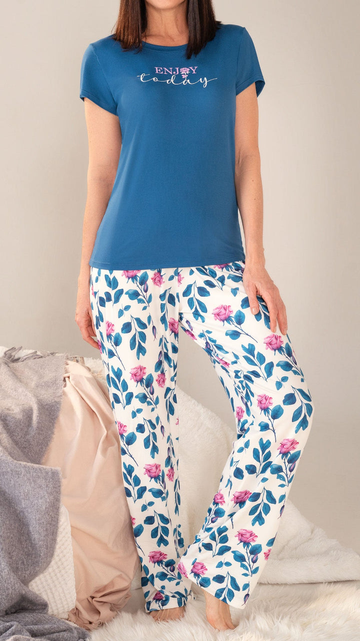 Pijama para mujer suave y cómoda, compuesta por una camiseta estampada manga larga, Pantalón estampado con cintura elástica