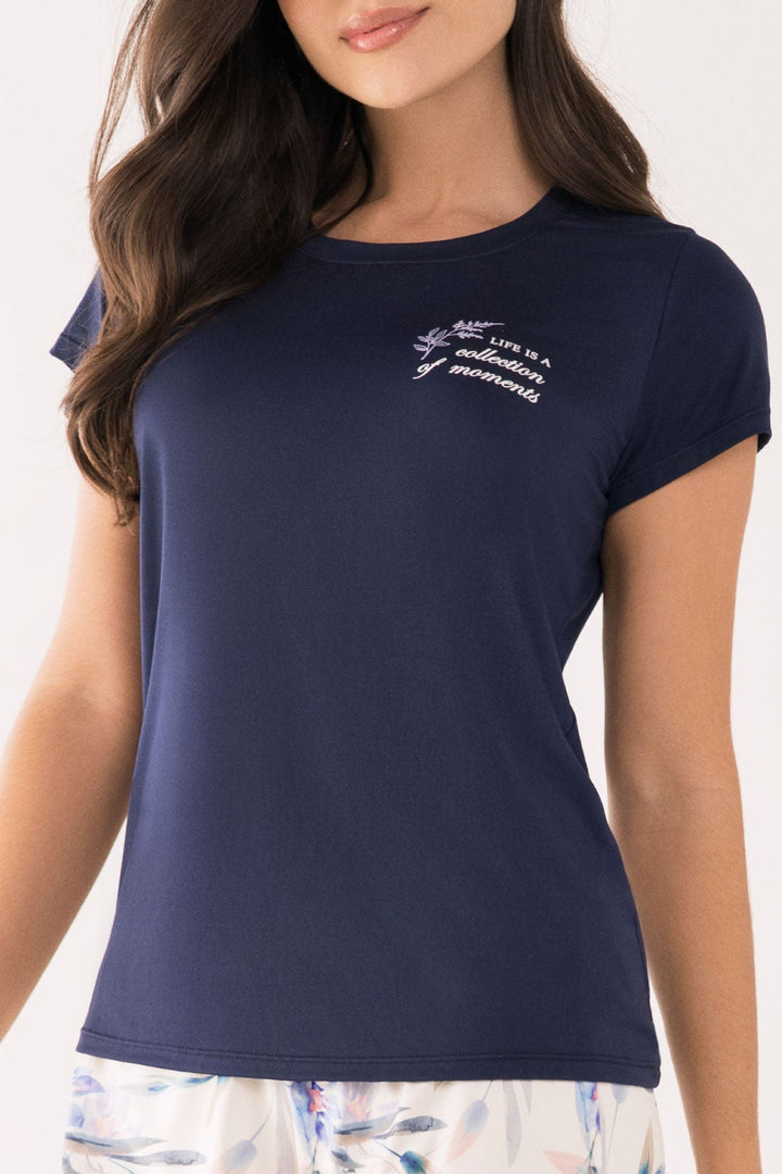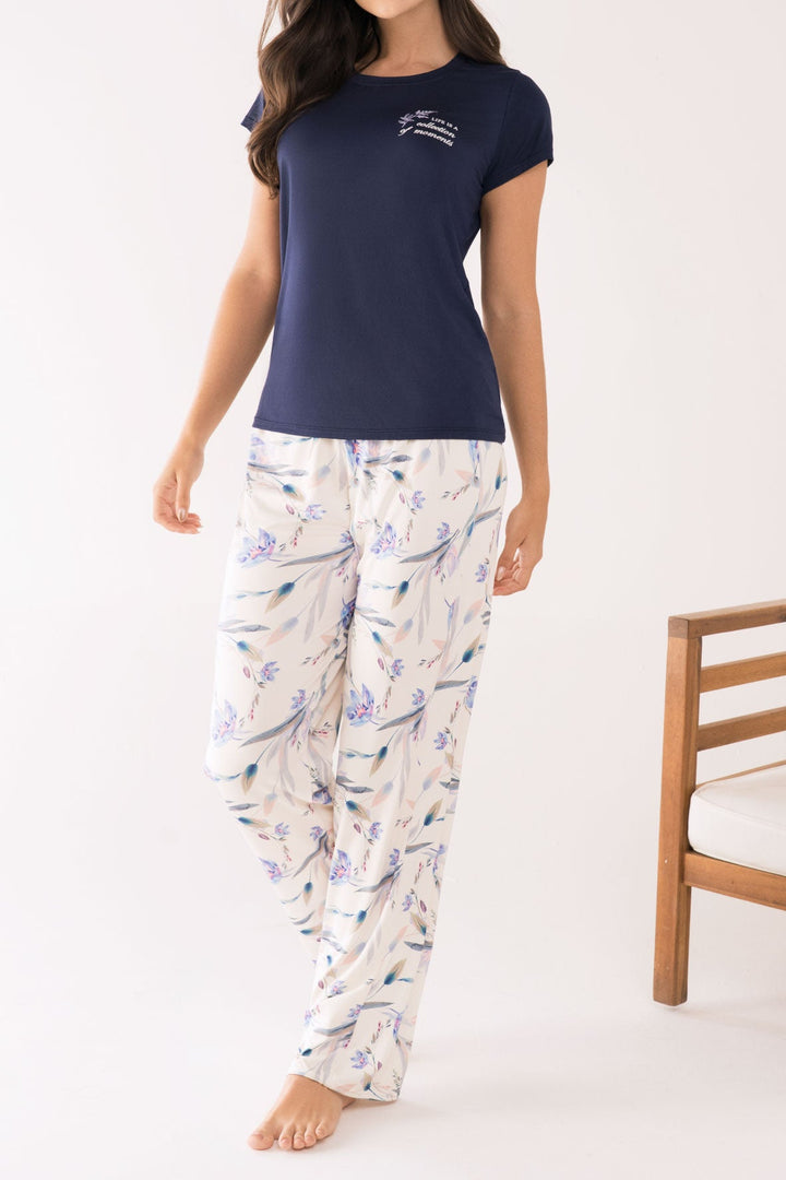 Pijama para mujer suave y cómoda, compuesta por una camiseta estampada manga corta, Pantalón estampado con cintura elástica