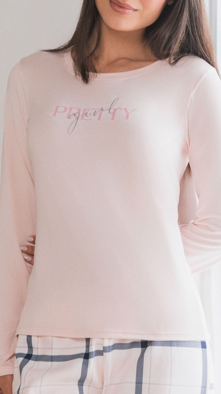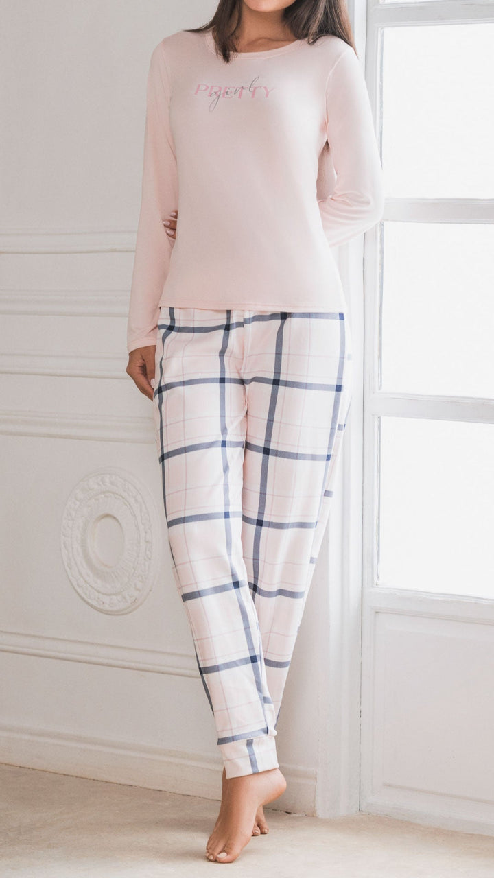 Pijama elaborada especialmente para el frio con diseño divertido, compuesto por una camiseta manga larga estampada y pantalón suave con cintura elástica.