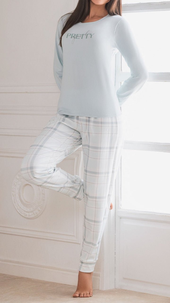 Pijama elaborada especialmente para el frio con diseño divertido, compuesto por una camiseta manga larga estampada y pantalón suave con cintura elástica.