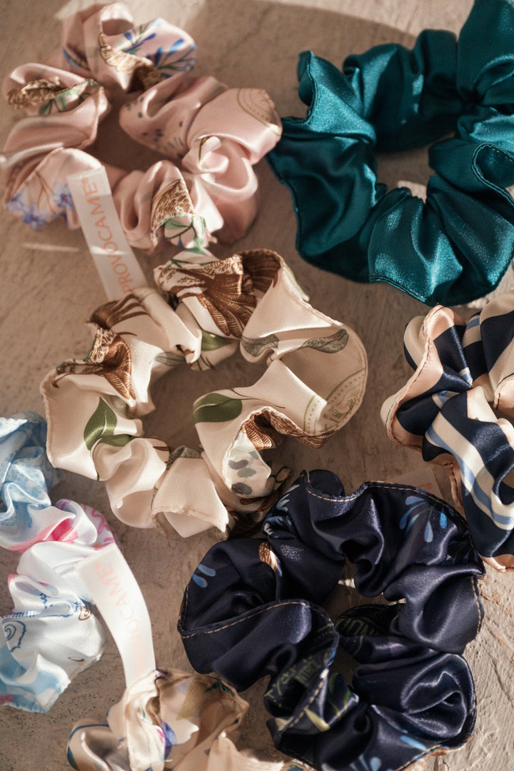 Cuida tu cabello con este set de ligas al ser de satín no deja quiebres, no maltrata el cabello y da un toque de elegancia a tu peinado.
